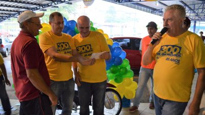 A primeira moto 0 km da ‘Promoção 300 mil em Prêmios’ já tem seu ganhador. É Silverio Alexius, da Linha Barra Grande, interior de Palmitos, SC. O sorteio foi neste sábado, dia 25/11, às 10 horas na matriz, em Palmitos. Participaram da apuração os cupons depositados nas urnas em novembro, nos 18 municípios com unidades da cooperativa. O ganhador foi informado pela Cooper A1 e poderá retirar seu prêmio já na próxima semana. Já na sexta-feira, dia 24/11 foram sorteados entre todas as 24 micro-ondas.