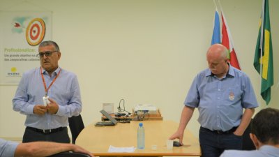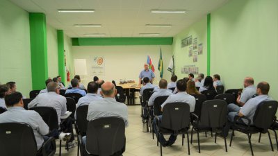 A reunião de gerentes de unidades e atividades da Cooper A1 deste mês de fevereiro (22/02), contou com a presença do diretor de agropecuária da Aurora Alimentos Marcos Zordan e do coordenador de treinamentos Joel José Pinto. Ambos vieram reforçar aos gestores da Cooper A1 a essência dos cursos de aperfeiçoamento, DeOlho e QT Rural, disponibilizados para todos os produtores da Cooper A1
