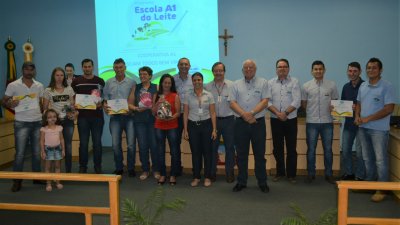 Totalizando um incremento médio de produção de 20,7 mil litros/mês, os 34 formandos da fase I do programa Escola A1 do Leite receberam seus certificados de formação na manhã desta sexta-feira (11/01), no município de Erval Seco, Rio Grande do Sul.